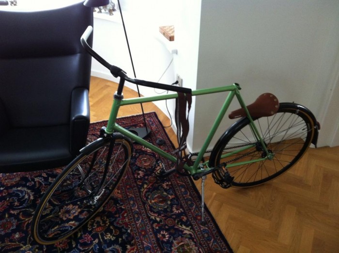 | Jeg låste cyklen på banegården i cykkelskuret på broen overfor Bruuns galleri i Århus. Cyklen var låst med kæde lige i midten af skurret under halvtaget på den øverste hylde. Den stod over weekenden fra fredag eftermiddag til søndag aften. |