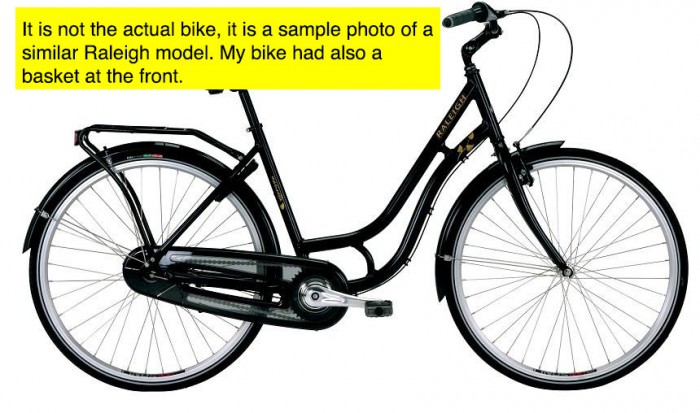 | I left the bicycle at Avedøre S-tog station. The bicycle was stolen on 3rd of May between 7:00-17:00. | |