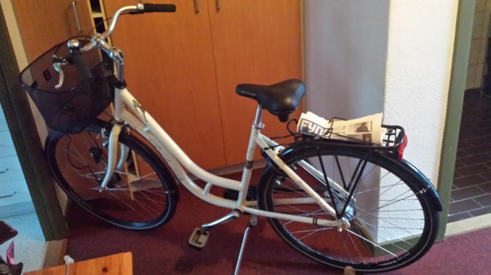| Cyklen lå på marken. Man kunne kun se baghjulet. | |