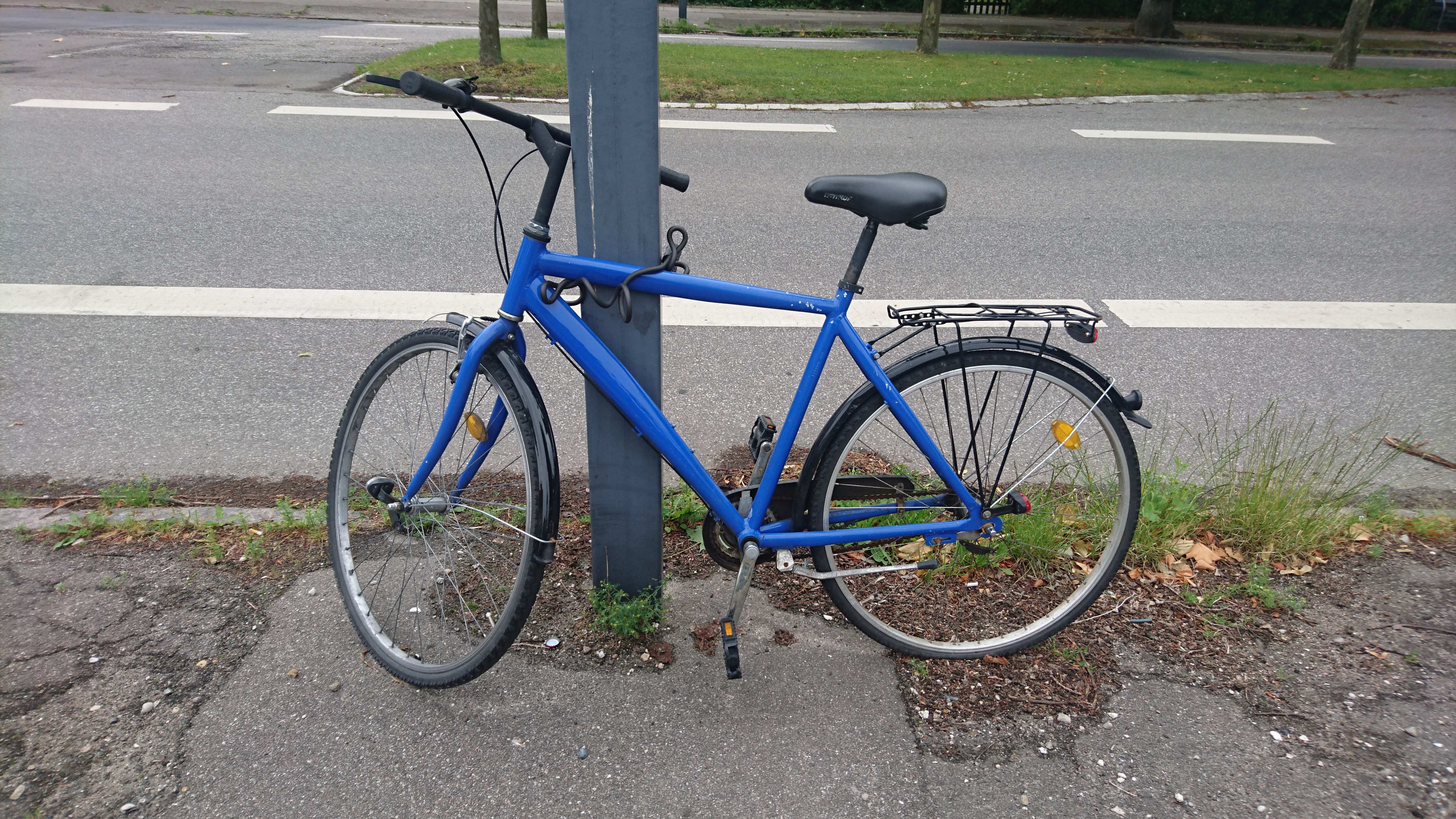 | Den står uden for vores hus og har stået der i ca. 14 dage. | |