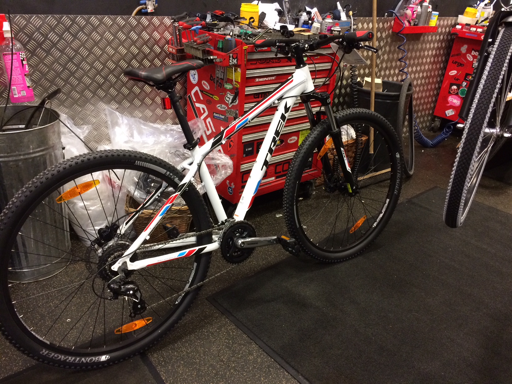 | Cyklen var parkeret foran indgangen til en øjenlægeklinik. | |