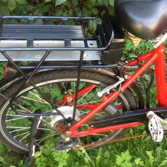 Cyklen er fundet på Frederiksberg, mens nogle prøvede at klippe låsen. Den står nu i en have og venter på sin rette ejermand. Der står noget foran på kassen, som kan bruges som identifikation. Der er ikke noget stelnummer at se. Batteriet er stjålet.
