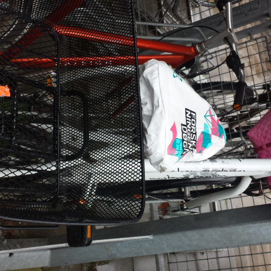 Citybike str 54. Hvid med grå og sort bogstaver på stangen. Velholdt. Dog stor ridse bagerst på bagagebærer. Den lyserøde cykelkurv var ikke på, da den blev stjålet. Der var en sort på bagagebæren. Sadelovertræk og kurv kan være fjernet. . |