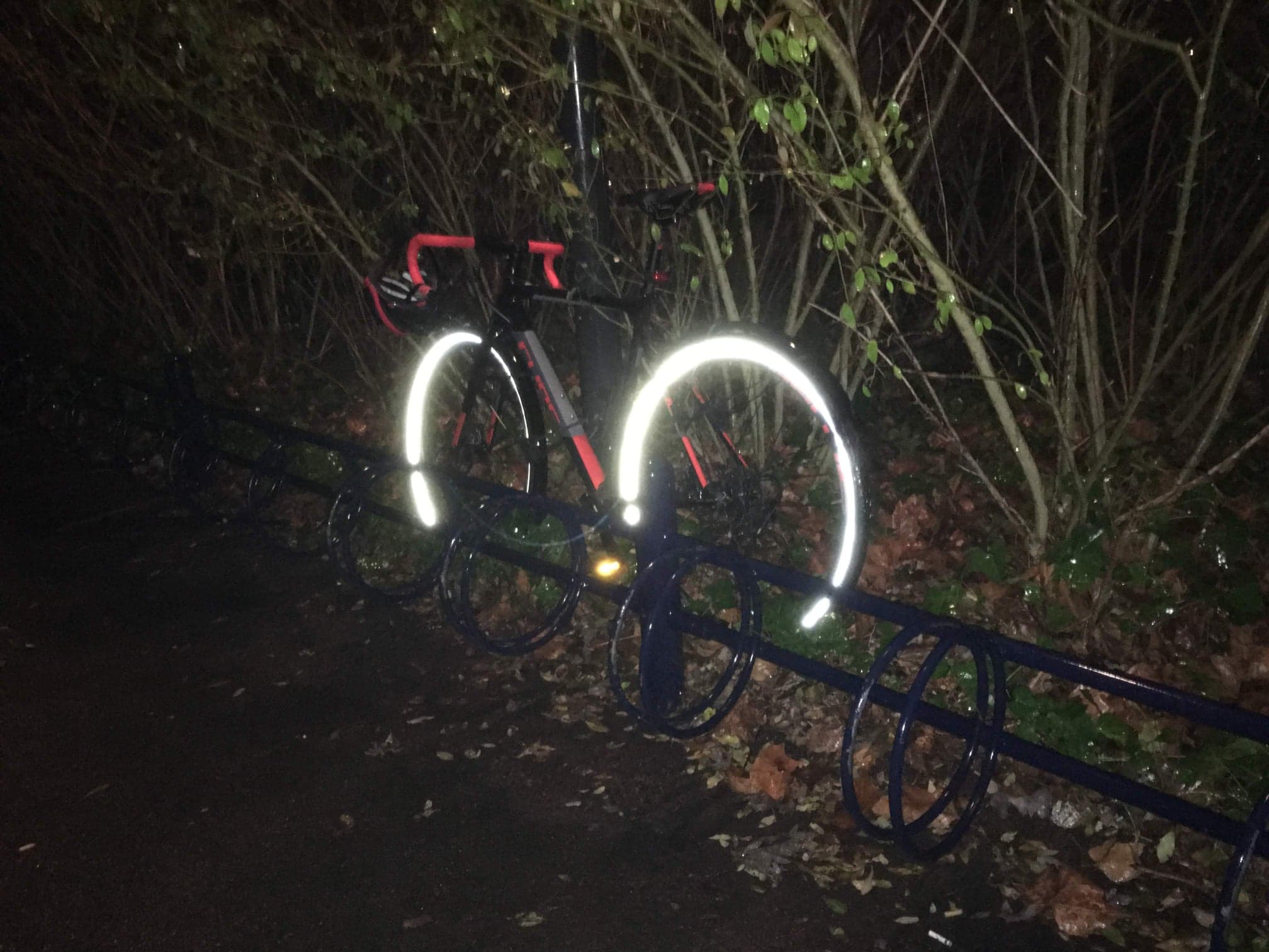 | Det var ved et cykelstativ ud foran (til højre) for Nærum gymnasium på nederste "lag" af de 3 hvor man kan stille sin cykel. | |