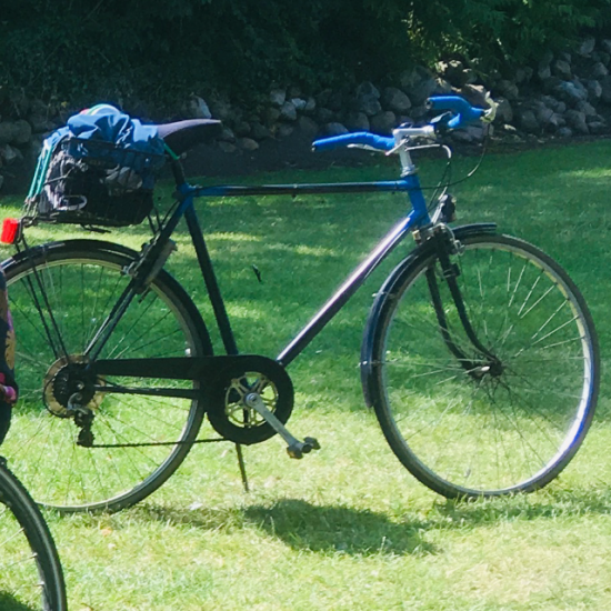 Cyklen hang bag på bilen, på p-pladsen ved Sct. Peders Kirkeplads ned mod åen. |