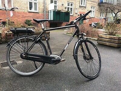 Sort Batavus El-Cykel I herre model fra 2015. Grå kontrol panel ved venstre håndtag og grå ydre skjold på bosch motoren.