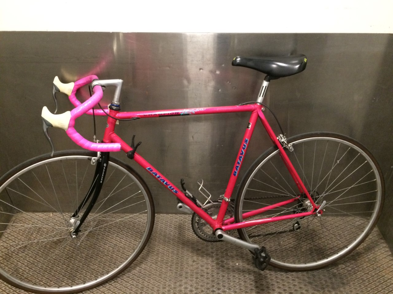 Vintage lyserød retro racer fra Batavus. 56 cm. 12 gear. Lyserøde bukke, lyserød stel, rød ringklokke. Gear på stel.