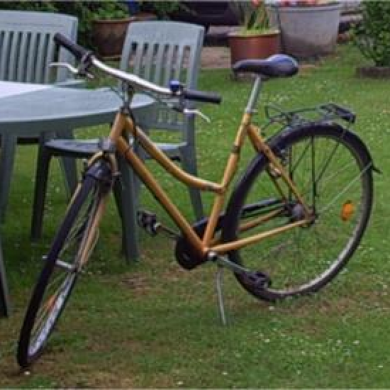 Parkeret på fortorv op af lysmast ved Axeltorv ved fodgængerfeltet over Vesterbrogade, København (kulturnatten) |